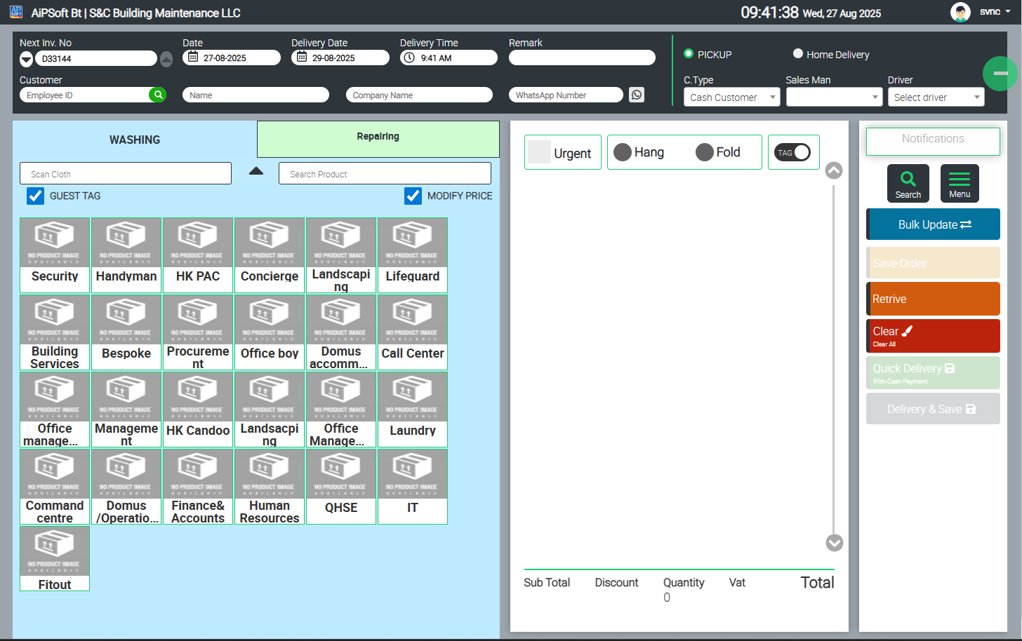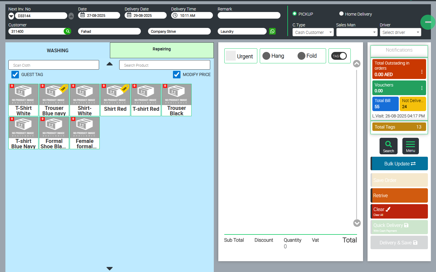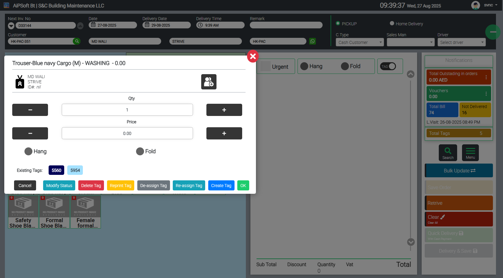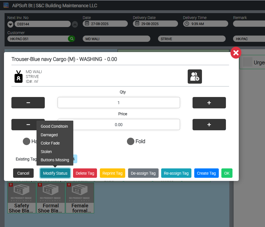 Cloth Tagging is a core feature in the Laundry POS System. It allows uniforms to be tagged with employee names and details, ensuring tracking throughout their lifecycle.