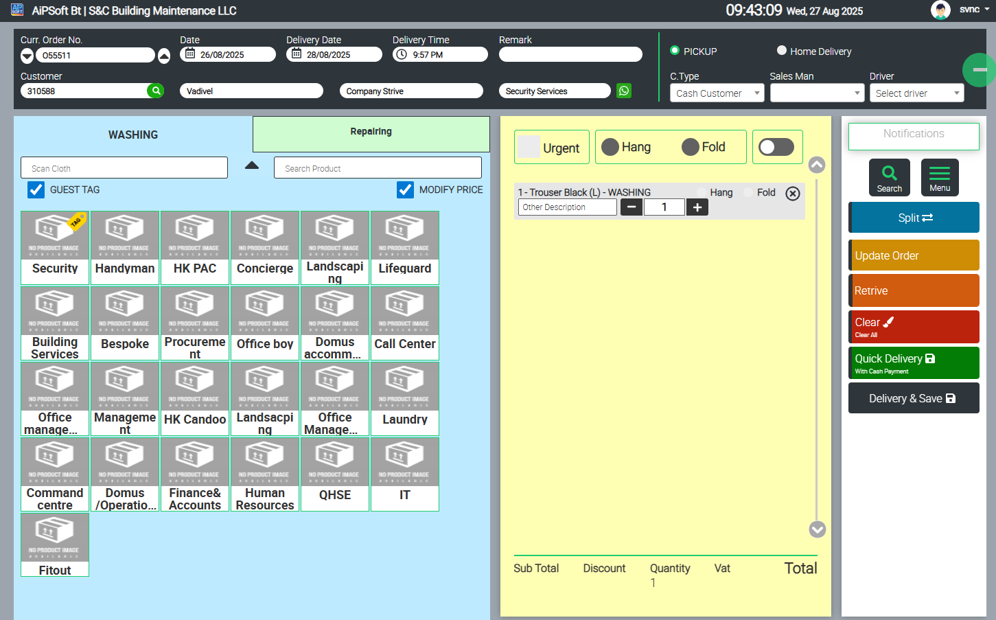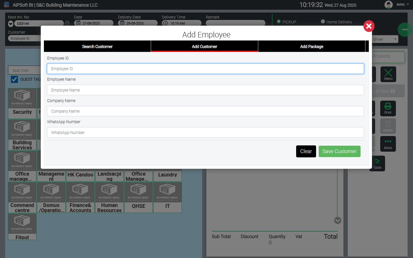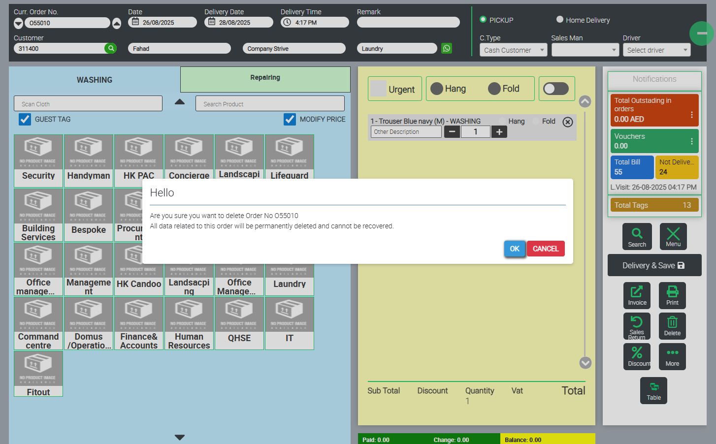 Cloth Tagging is a core feature in the Laundry POS System. It allows uniforms to be tagged with employee names and details, ensuring tracking throughout their lifecycle.
