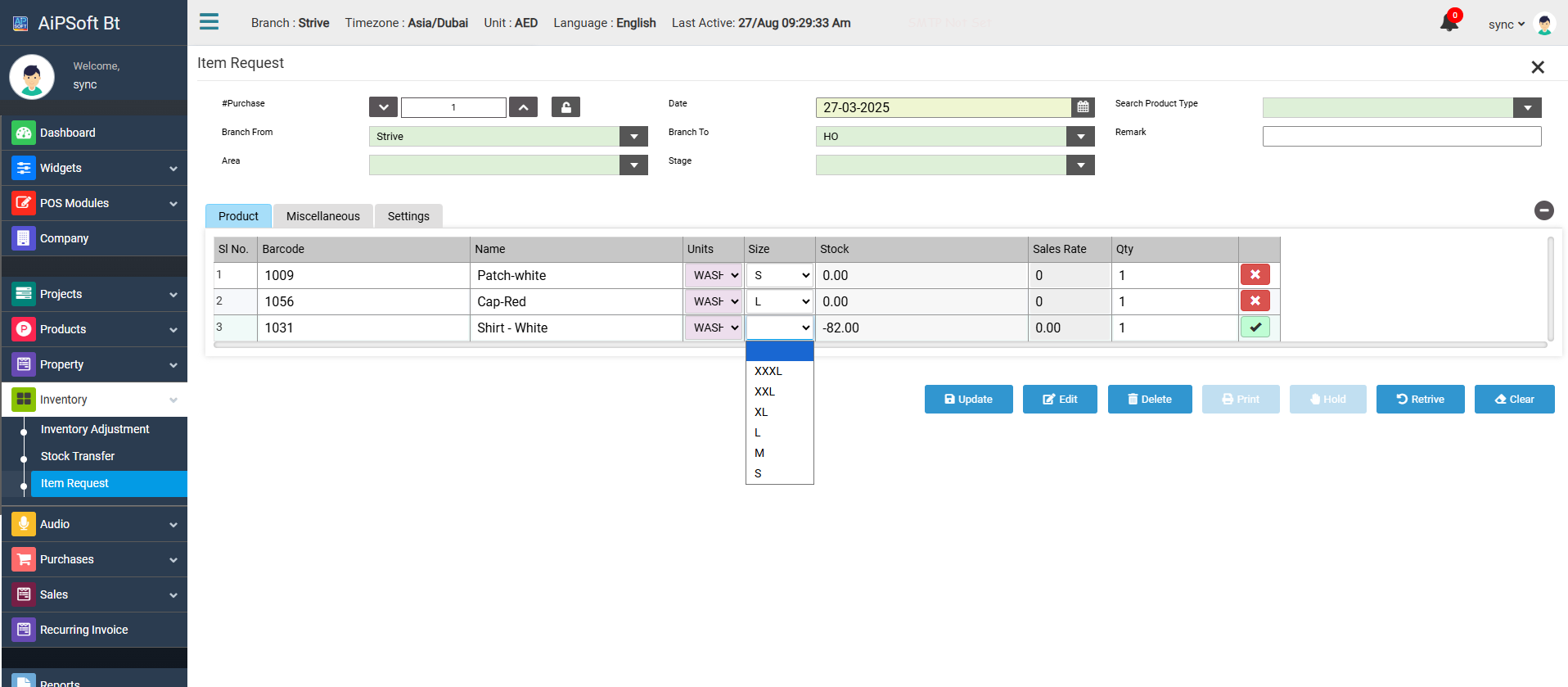 The Uniform/Laundry Department may require new uniform sets for their stock. These can be requested directly via the Aipsoft Application.