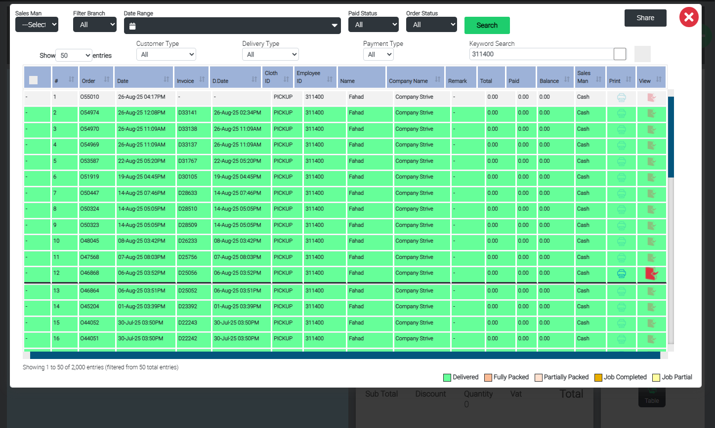 Or click the search icon in the customer input area to browse the full employee list and select.